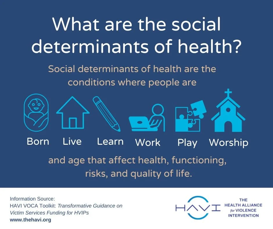 Addressing the Social Determinants of Health: HVIPs elevate the issues of the revolving door of violence while addressing inequity and building partnerships with communities and survivors of violence.